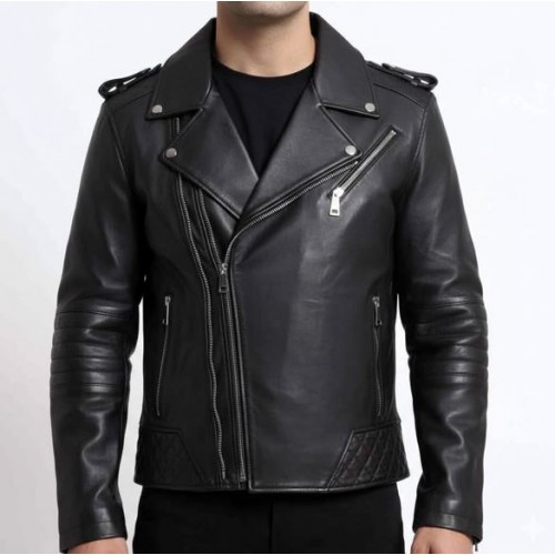 This designer leather biker jacket for men is made from high-quality real leather. It features a modern biker style with a premium finish. The jacket is comfortable, durable, and perfect for riding or casual wear. Its stylish design adds a bold and confident look to any outfit
